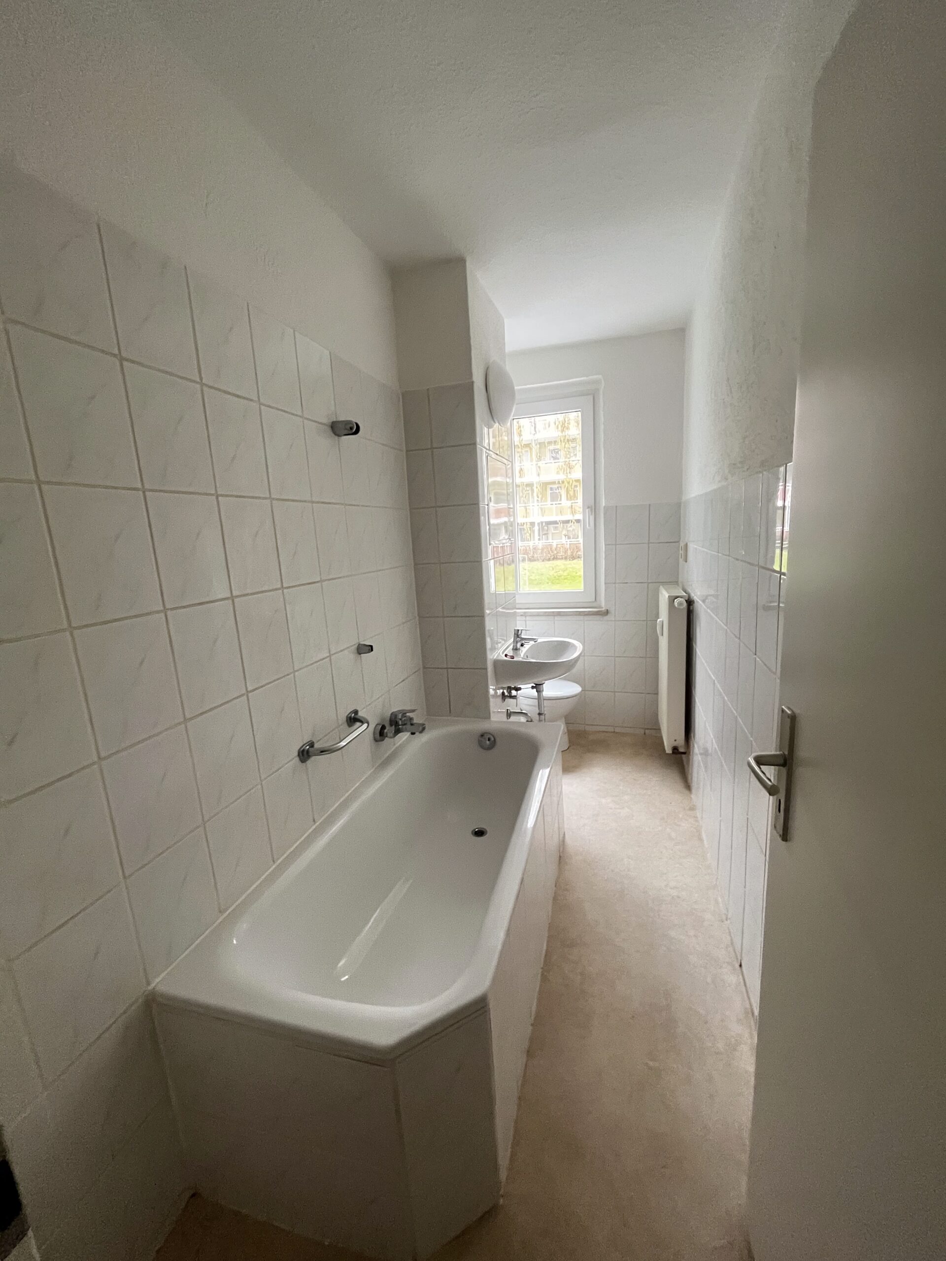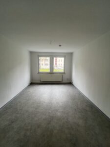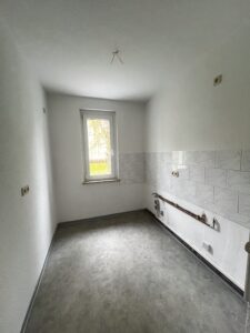 Die Wohnung verfügt über 1 Zimmer, Küche, Bad und Flur, von dem aus Wohnzimmer, Küche und Bad direkt erreichbar sind. Decken und Wände sind bereits tapeziert. Das Bad ist mit einer Badewanne ausgestattet. Zur Wohnung gehört ein geräumiger Kellerraum.